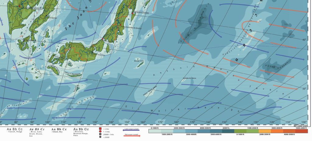 Például az Elephantidae kontinenst ábrázoló térkép (Land of the Elephant, azaz az Elefánt Földje vagy Elefántföld) földrajzi objektumai főként az elefántfélék (melynek latin elnevezését viseli a térkép) családjába tartozó fajokról vannak elnevezve: Mammuthus africanavus (afrikai mamut), Elephas maximus bengalensis (indiai elefánt), Palaeoloxodon antiquus (erdei őselefánt), és így tovább.