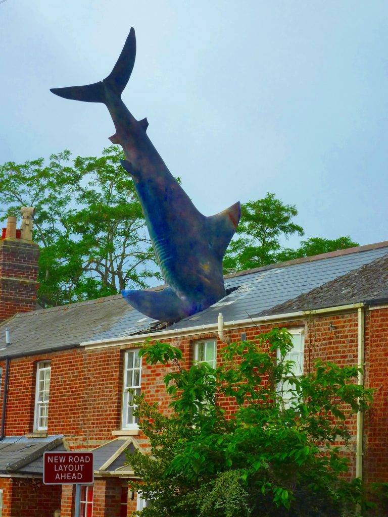 Egy, a háztetőből hét és fél méter magasan kiálló cápa már 35 éve helyi nevezetességnek számít Oxford egyik külvárosában, Headingtonban.